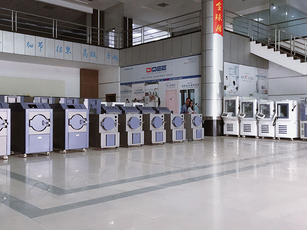 試驗(yàn)設(shè)備自主研發(fā)生產(chǎn),從激光切割—>折邊—>焊接—>烤漆—>鈑金組裝—>冷凍焊接—>電子組裝—>設(shè)備成品—>調(diào)式—>發(fā)貨,一條龍服務(wù)