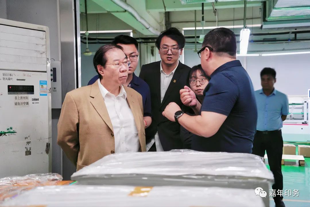 專家組一行來到嘉年印務(wù)生產(chǎn)車間,詳細(xì)了解企業(yè)目前的產(chǎn)品種類和生產(chǎn)管理情況。