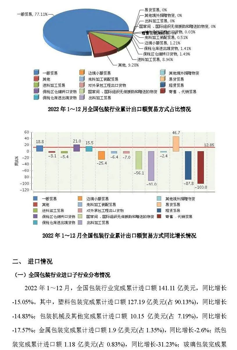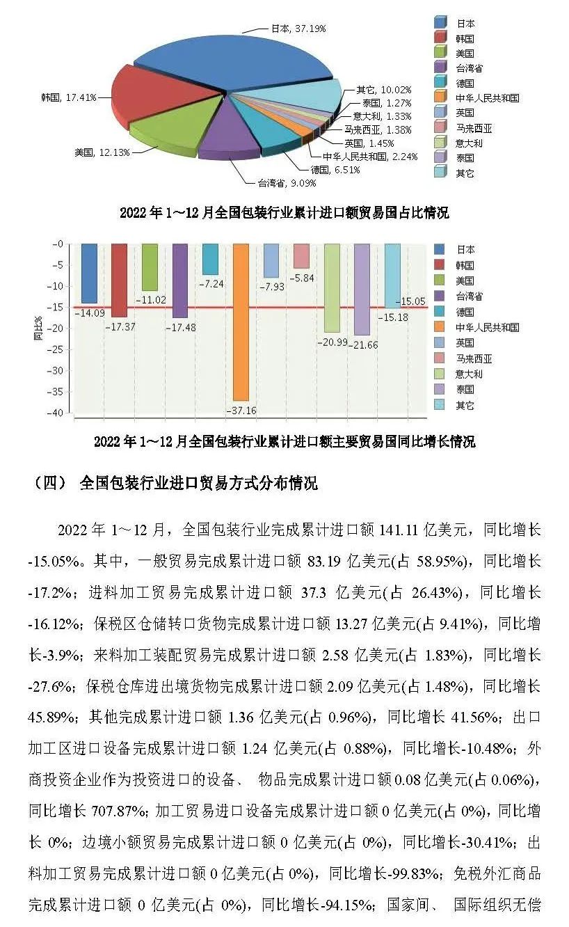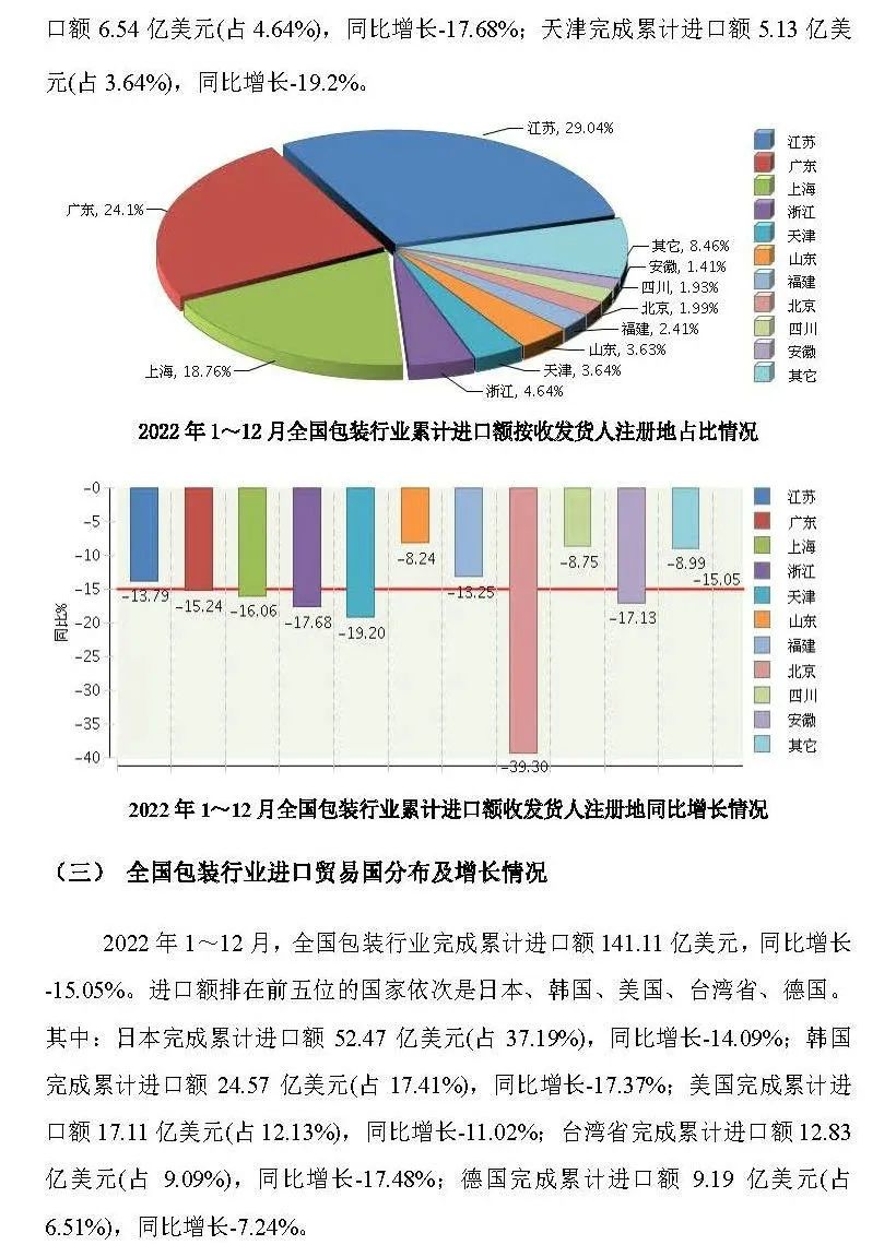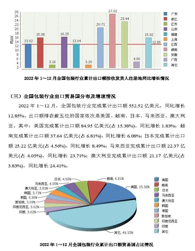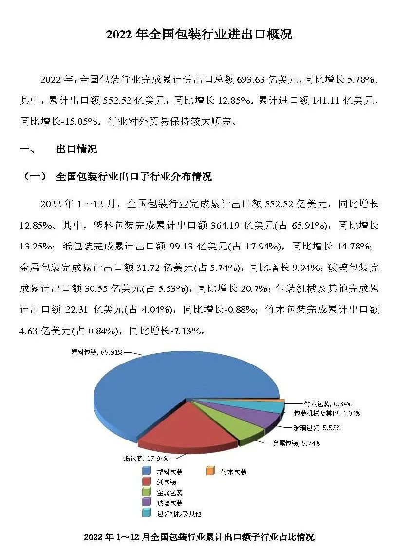 2月底,中國包裝聯(lián)合會(huì)發(fā)布了“2022年全國包裝行業(yè)進(jìn)出口概況”。根據(jù)報(bào)告顯示,2022年全國包裝行業(yè)完成累計(jì)進(jìn)出口總額693.63億美元,同比增長5.78%。行業(yè)對外貿(mào)易保持較大順差。
