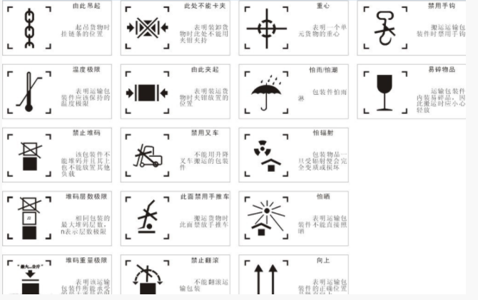 ⑤體積與重量標志一一標明每一箱的實際外廓尺寸(長*寬*高)和重量(凈重和總量),以便承運部門參考這些數(shù)據(jù),選擇運輸方式和貨物的堆垛方法。